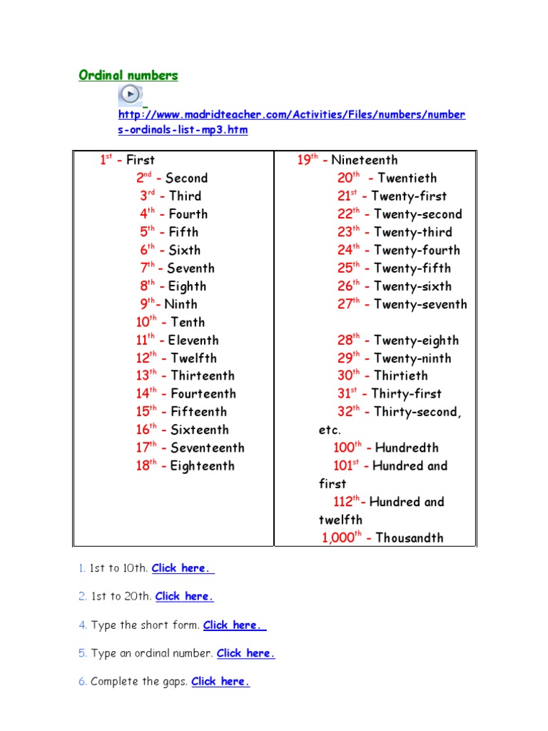 Ordinal Numbers Teaching Resources from az779572.vo.msecnd.net We did not find results for: Maybe you would like to learn more about one of these? Ordinal numbers from 1st to 31st. Check spelling or type a new query.